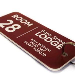 - Custom key fobs and branded tags
