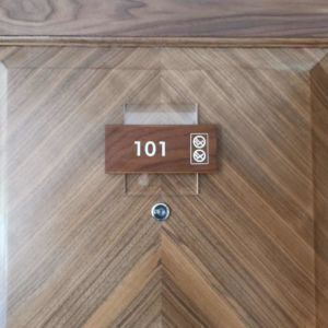 - Room numbers and nameplates