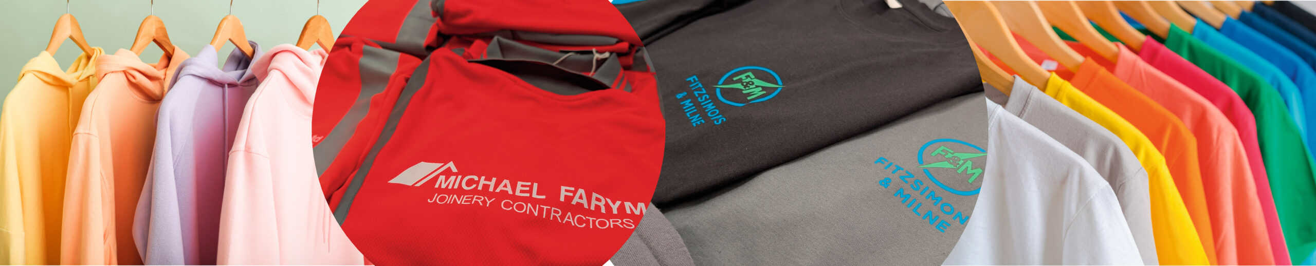 We supply and print a wide range of garments — including t-shirts, hoodies, polos, hi-vis workwear, and more.